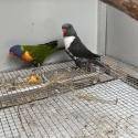 Grey cock bird and Karki split blue hen. Cock bird is 12 months old and hen is 3 years old. Bonded pair. Call or txt 0420890510. May swap for pied blue with cash adjustment.
