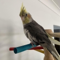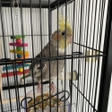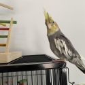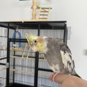 Meet Chester, This lovely hand raised 6 month-old cockatiel looking for a loving new home. Hes a bright, happy, and social boy who loves to chat and interact. Chester enjoys gentle head scratches and will charm you with the phrases he already knows Play peek-a-boo, What are you doing? and Woot woo!