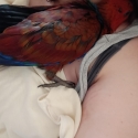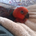 I would describe RED (as we call her) to be like a feathered puppy, she will crawl under U chin and flop side ways.