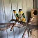 Selling a truly well bonded breeding pair of Black Headed Caiques, 7 years old, steel leg rings, DNA card's, in excellent condition, love a bath - hence the wet images, diet of seeds, mixed nuts, fruit & vegies. $2000