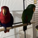 Ive 2 eclectus parrots a male and a female theyre so healthy and they come with their food 5 kgs of parrot mix Ive bought at with 150$ recently.