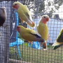 Bred from jade green Pied cock split blue x D sydney yellow split blue hen. picture of parents in last picture.
