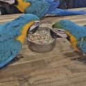 Hand raised blue and gold macaws