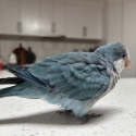 Young female hand reared blue Quaker. She is fully weaned and ready to go to her new home.