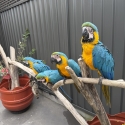 Blue & Gold hand raised very friendly good with kids excellent feathers and healthy bird s comes with food & Dna certificate available the bird come with Dna sex certificate