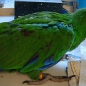 Two hand raised baby male Eclectus parrots