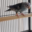 One male is missing feathers on head due to other male over grooming him. Feathers should return if separated.