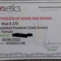 1 Dark Green Female is 3 years old and is unrelated to other birds