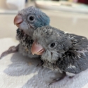 Two Hand Raised Cobalt Quakers Split Albino 12 weeks old friendly and ready to go. DNA tested Males $300 each