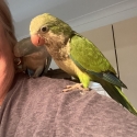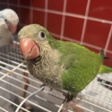 Ten weeks old baby green Quaker Male.Fully weaned,now eating seed,pellets,fresh fruits and vegetables.Untrimmed wings.Beautiful personality.