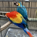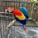 Scarlet macaw12 weeks old only male DNA certificate stainless steel leg ring ID almost fully weaned tame freindly pet.