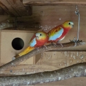 SOLD - 1 x cock full red body, yellow turquoise parrot x $80 (Pic 5 cock is on the right)