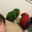 Selling my birds as I dont have enough time to care for them properly. I have 2 Eclectus parrots that are hand-raised, very friendly. They talk quite a lot and are very interactive. Both are microchipped and well looked after. They are used to being out of the cage and love roaming freely around the house. Also included is a 5-month-old Conure. Still a bit shy but healthy and slowly getting more comfortable with people.