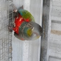 DNA crimson bely conure found DNA only 4 years old 1 hen bit plucked 1cock never bred for me I think they are 2 cock birds $ 150 for both