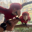 We have hand-raised Green-Wing Macaws (Ara chloropterus) available! Known as the gentle giants of the macaw world, these stunning parrots are admired for their brilliant red plumage, intelligent nature, and affectionate personalities.