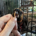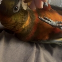 Very playful, friendly, and confident, with a lovely temperament. Enjoys interaction and loves a good neck scratch. Has been well handled and would make a fantastic companion bird.