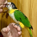 We have one hand raised black headed caique left. DNA tested male. 13 weeks old. Hand raised from 2 weeks of age and is super tame and friendly. Loves kisses and cuddles, sharing your food and generally being involved in everything you do. Will only sell to the best home.
